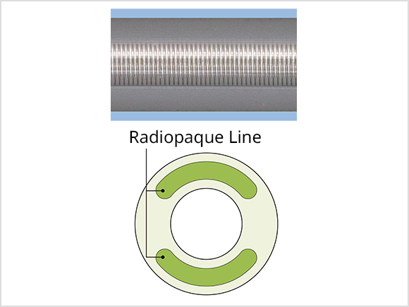 pRadiopaque agent is linearly embedded for easy detection of catheter piece left, in case of breakage inside body.